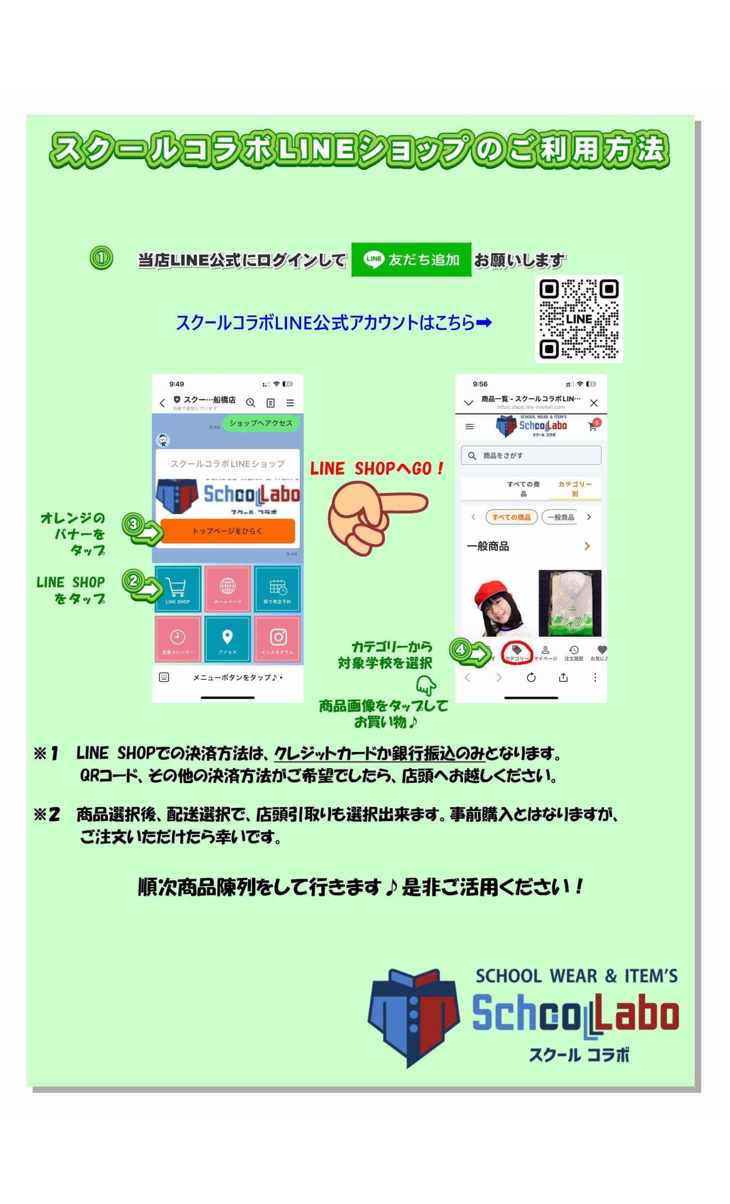 スクールコラボ LINEショップご利用方法